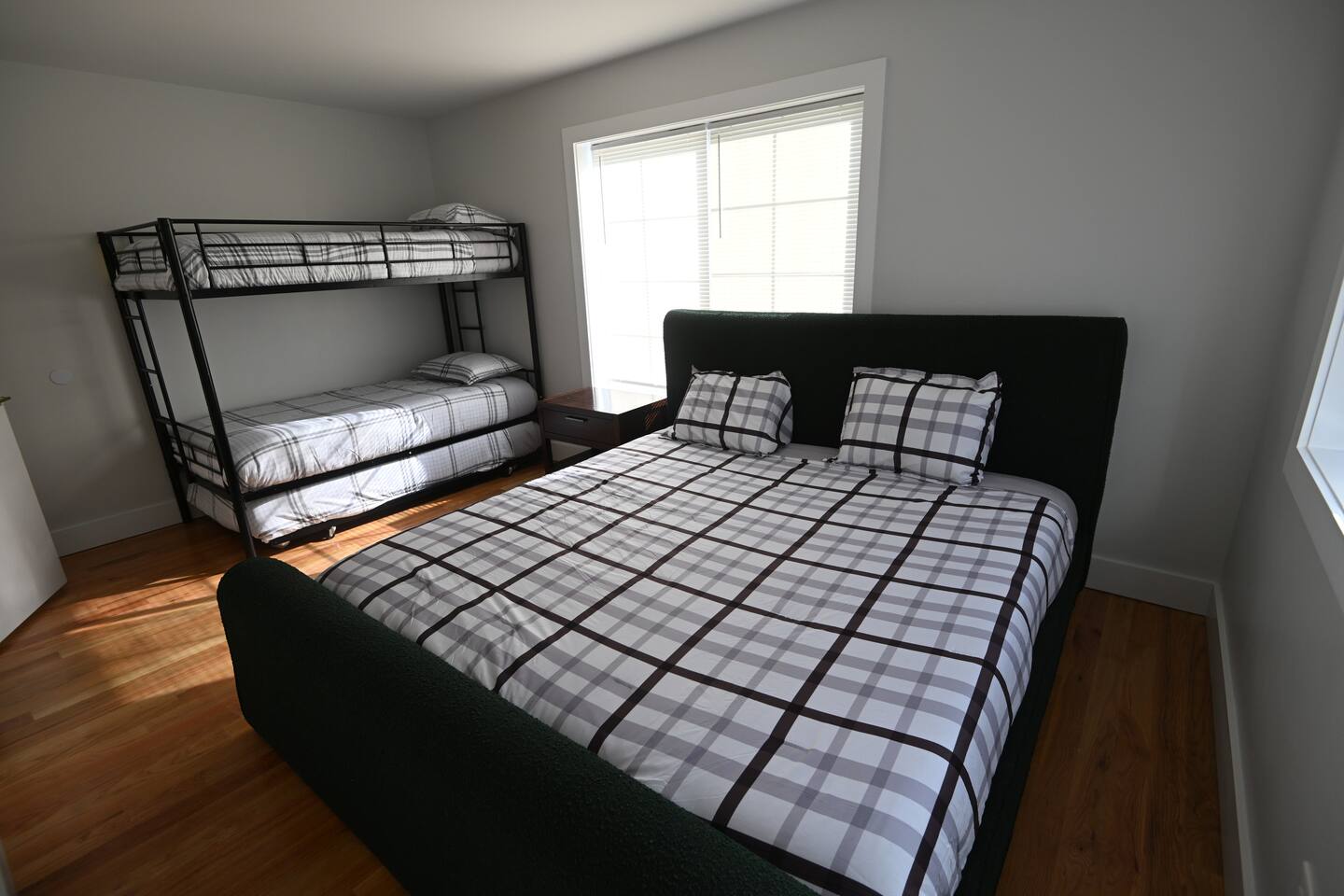 This spacious 3-bedroom, 2.5-bathroom lakefront home is perfect for large groups and families, sleeping 16+ guests across 11 beds. Layout: Bedroom 1: King bed, bunk bed, and pull-out trundle Bedroom 2: Two bunk beds (4 beds total) Bedroom 3: Queen bed and bunk bed Bathrooms: Two full bathrooms plus a convenient half bath Living Spaces: Open-concept kitchen and dining area for group meals Cozy living room to relax and gather Game area with a ping pong table Laundry room with washer and dryer for your stay Plenty of parking, and located in a quiet 6-home lakefront complex, this retreat blends comfort, convenience, and scenic views — perfect for a Catskills escape.