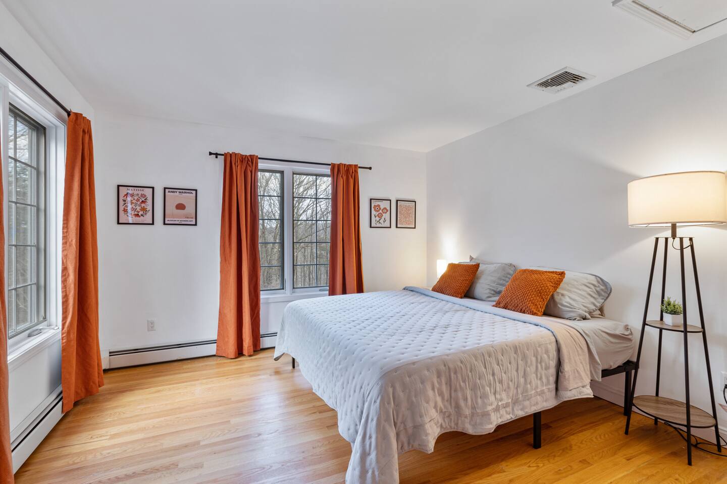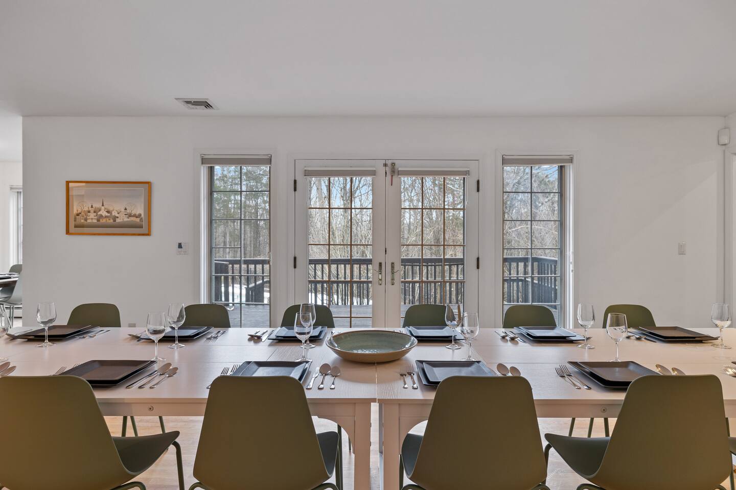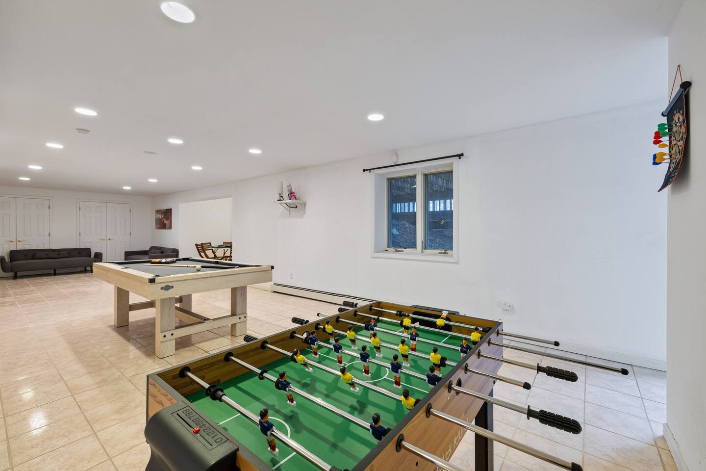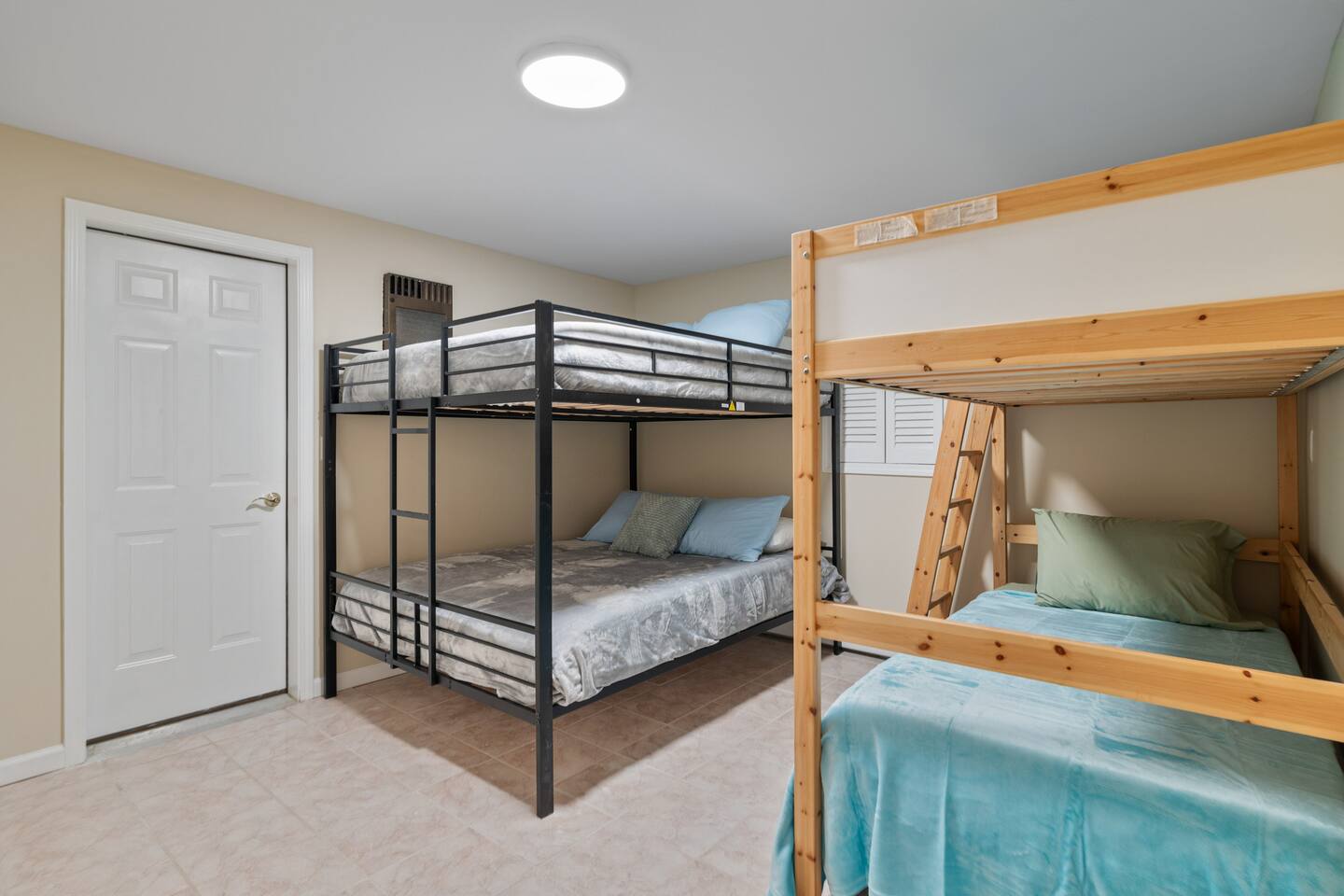 This expansive 9-bedroom, 4.5-bathroom home on 7.5 private acres is designed for up to 25 guests. The main floor offers a chef’s kitchen, dining area, living room, two bedrooms, and a bathroom, with direct access to the deck. Upstairs, you'll find a luxurious master suite with a private bath, three additional bedrooms, and two full bathrooms. A unique mid-level bedroom features a dedicated workspace. The lower level includes two bedrooms, a full bathroom, two sofa beds, a game room, and walkout access to the pool. Every detail is thoughtfully designed for a stylish and comfortable stay.