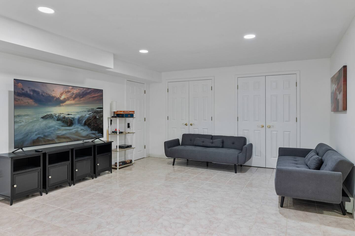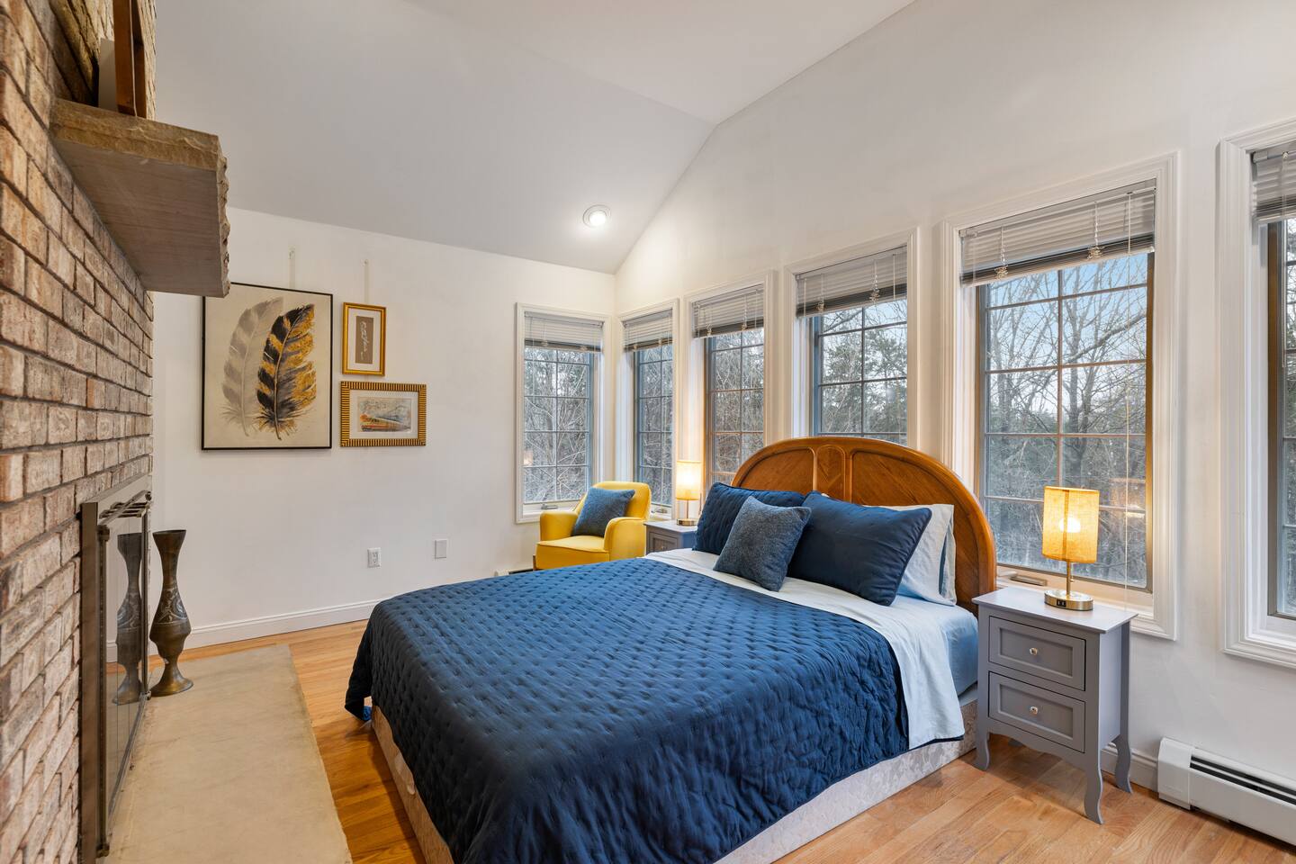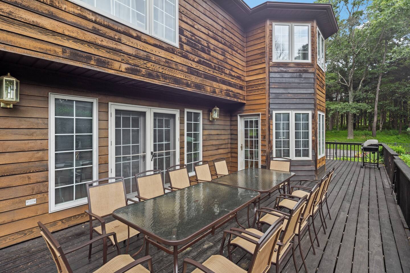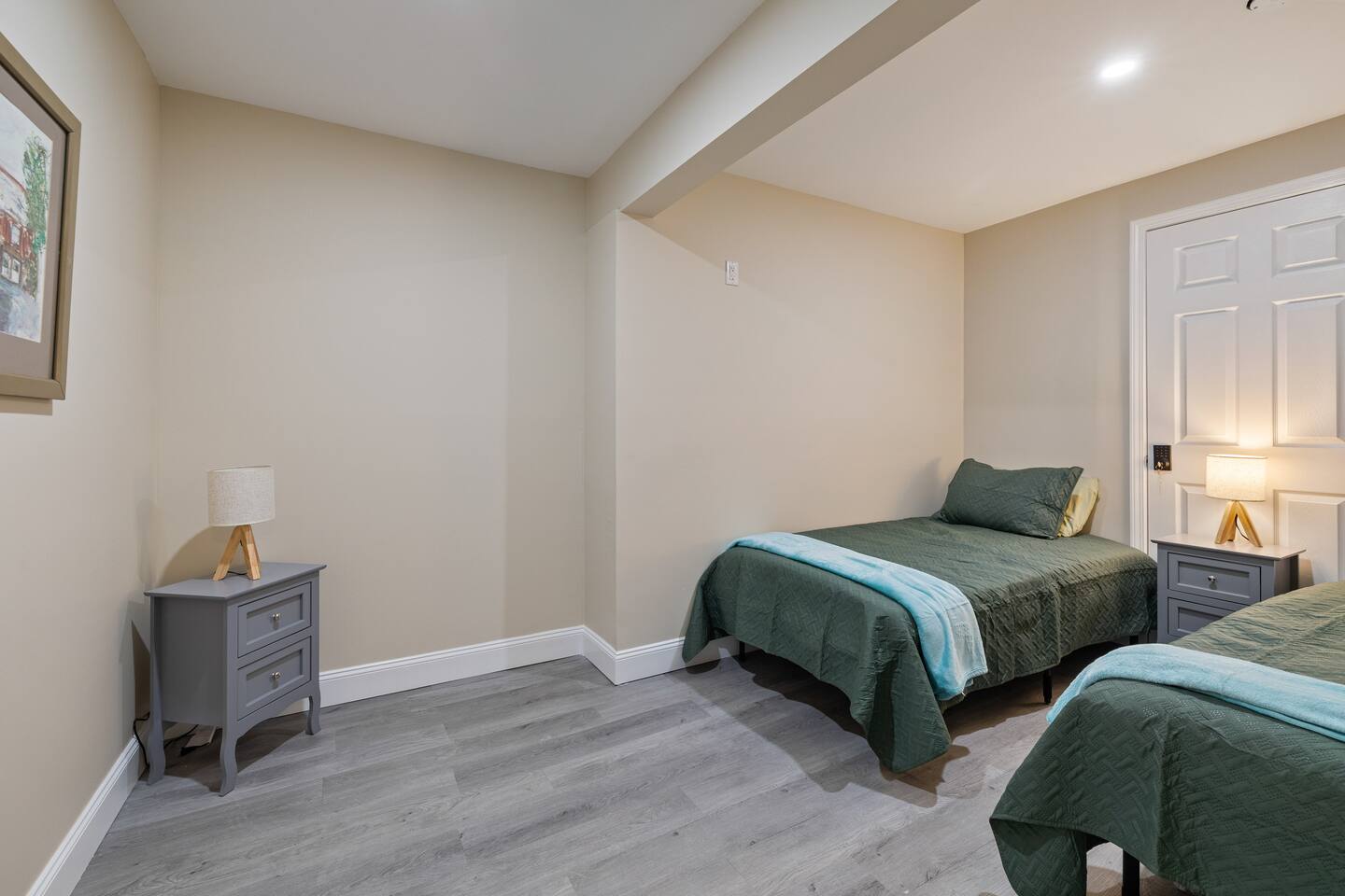 This expansive 9-bedroom, 4.5-bathroom home on 7.5 private acres is designed for up to 25 guests. The main floor offers a chef’s kitchen, dining area, living room, two bedrooms, and a bathroom, with direct access to the deck. Upstairs, you'll find a luxurious master suite with a private bath, three additional bedrooms, and two full bathrooms. A unique mid-level bedroom features a dedicated workspace. The lower level includes two bedrooms, a full bathroom, two sofa beds, a game room, and walkout access to the pool. Every detail is thoughtfully designed for a stylish and comfortable stay.