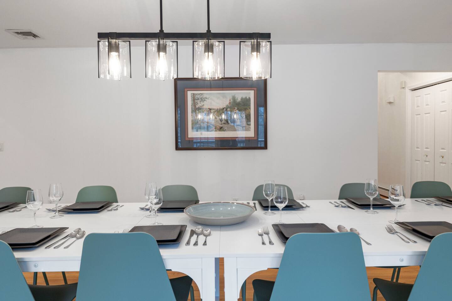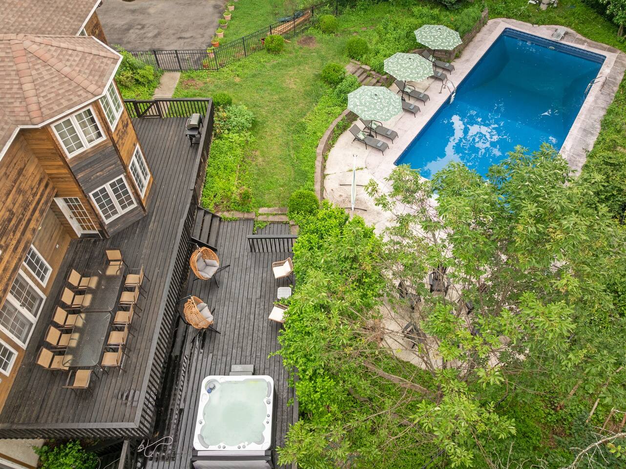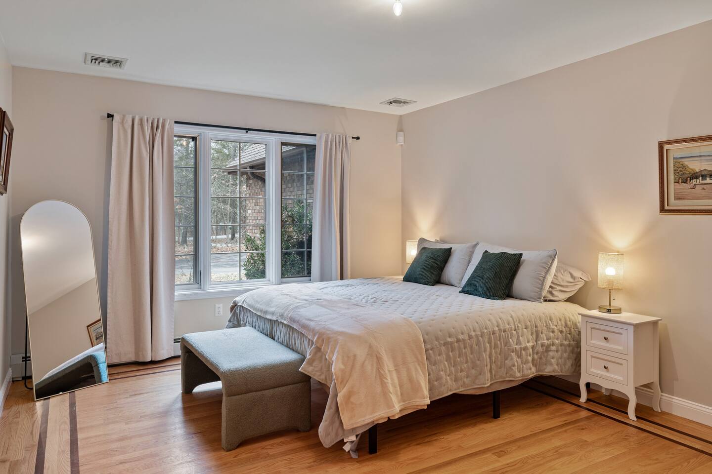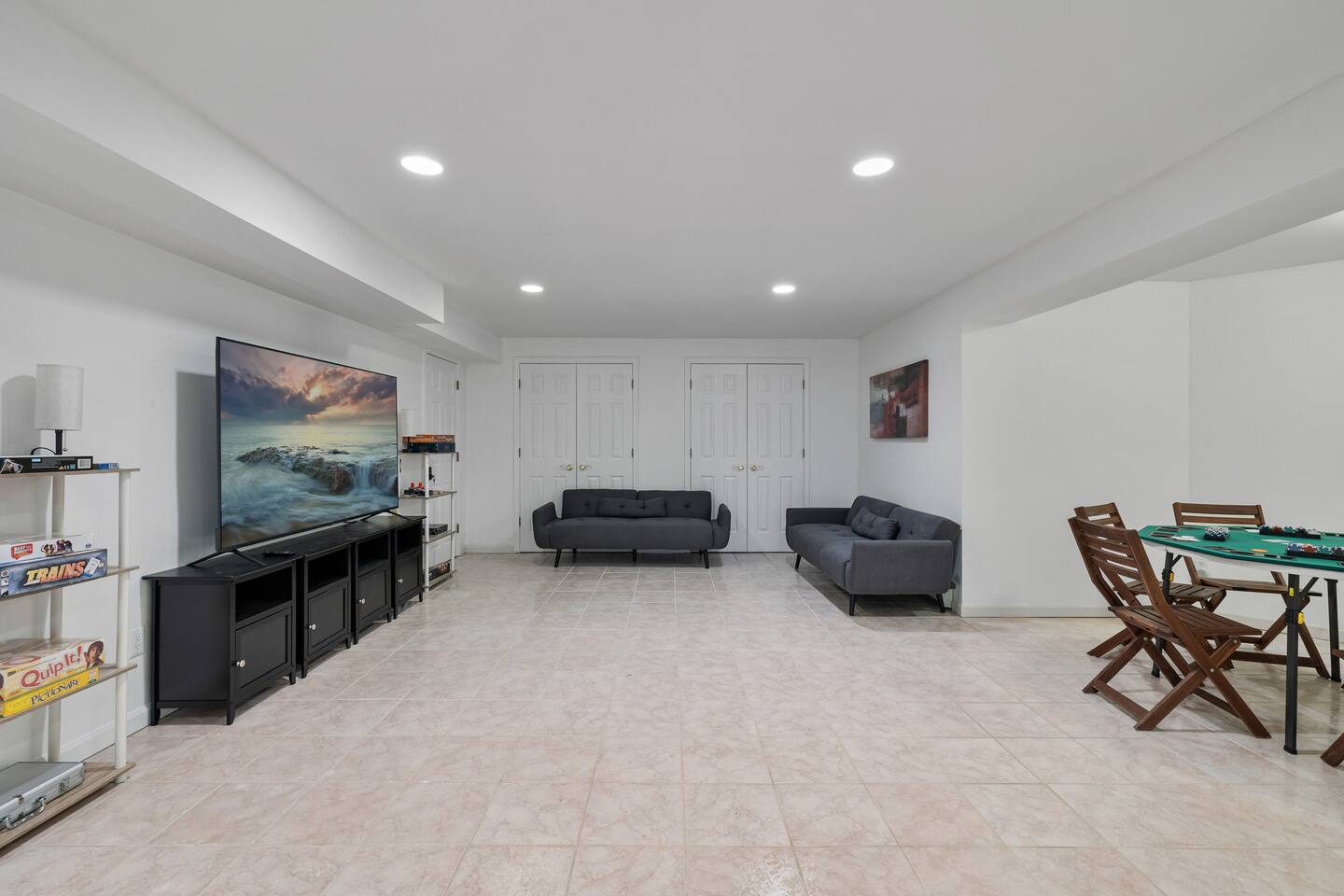 This expansive 9-bedroom, 4.5-bathroom home on 7.5 private acres is designed for up to 25 guests. The main floor offers a chef’s kitchen, dining area, living room, two bedrooms, and a bathroom, with direct access to the deck. Upstairs, you'll find a luxurious master suite with a private bath, three additional bedrooms, and two full bathrooms. A unique mid-level bedroom features a dedicated workspace. The lower level includes two bedrooms, a full bathroom, two sofa beds, a game room, and walkout access to the pool. Every detail is thoughtfully designed for a stylish and comfortable stay.