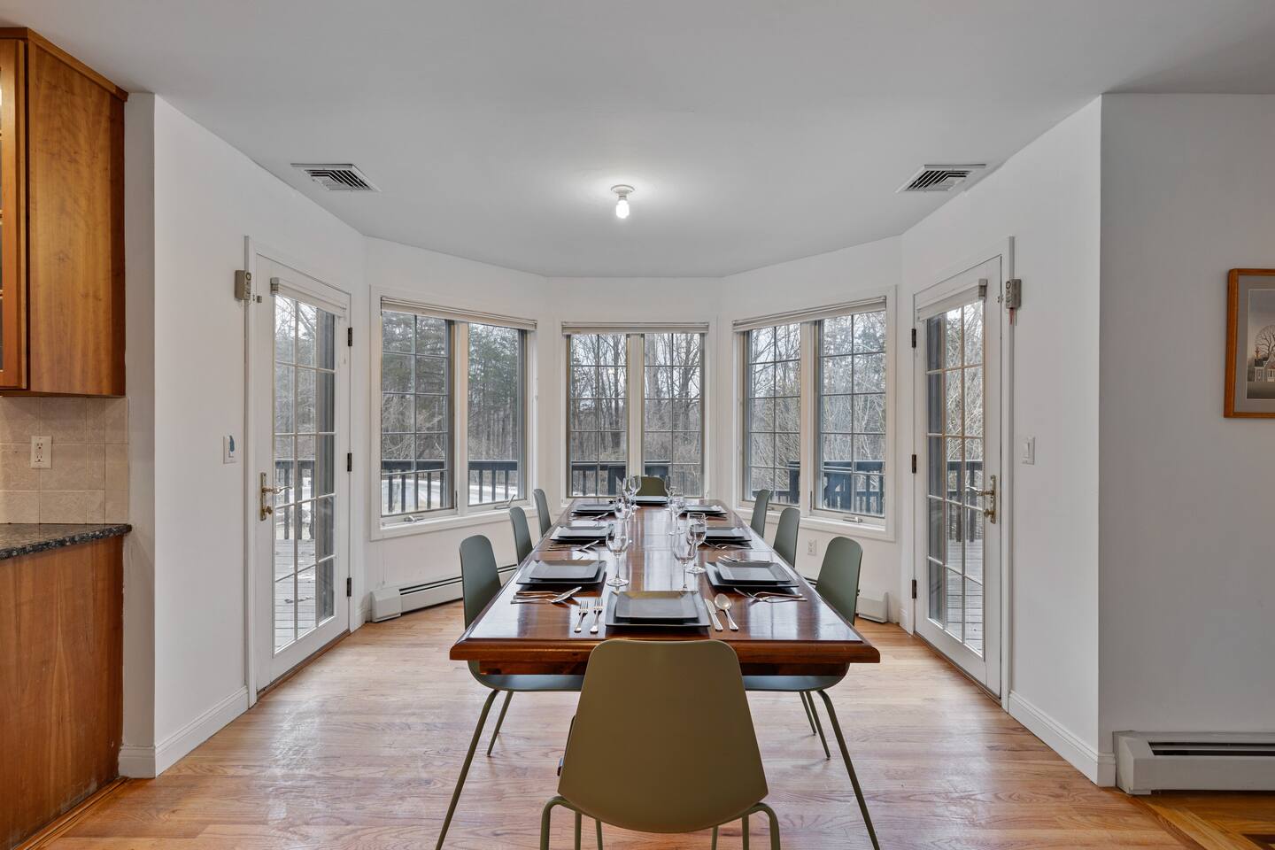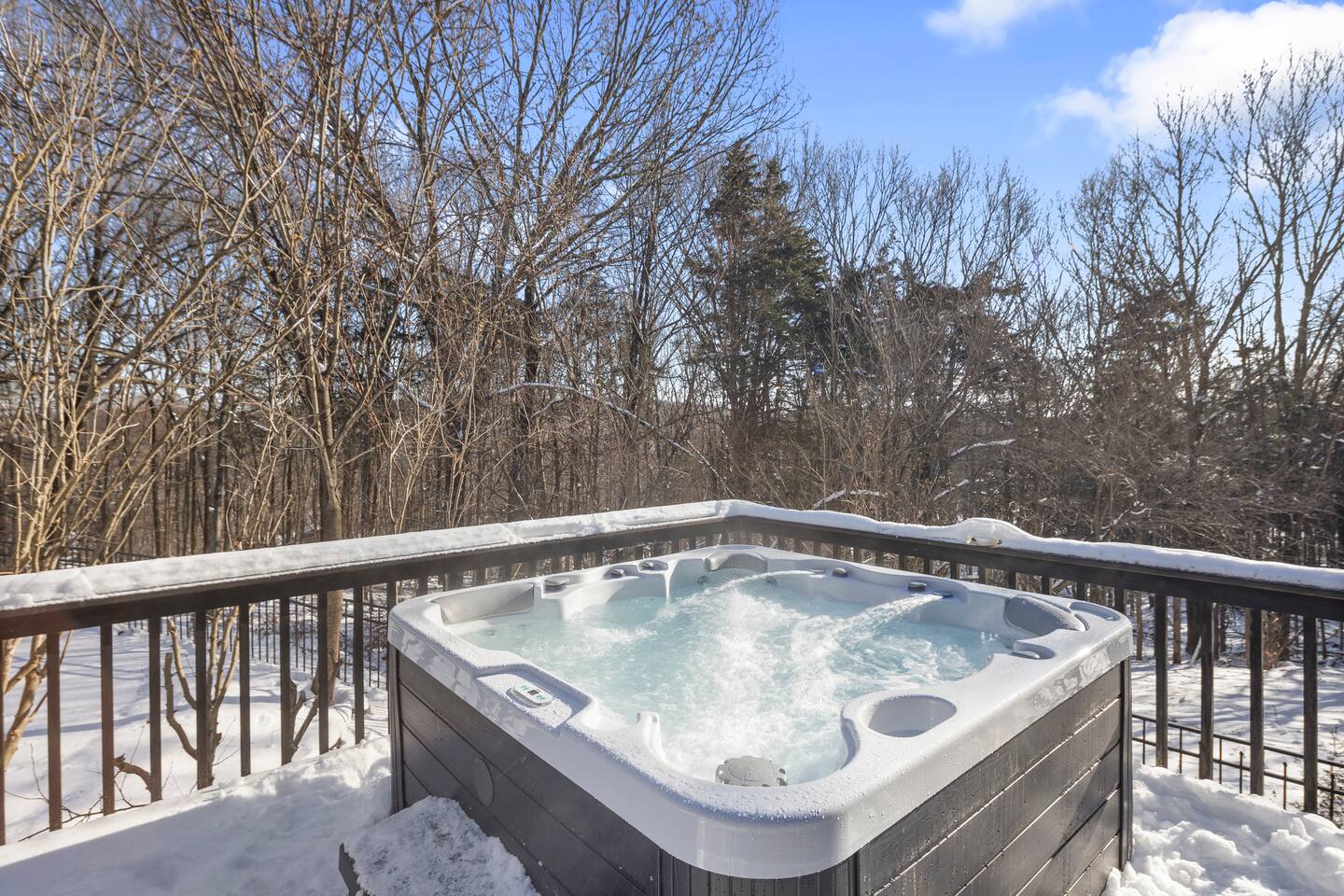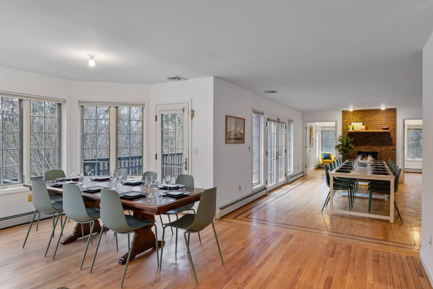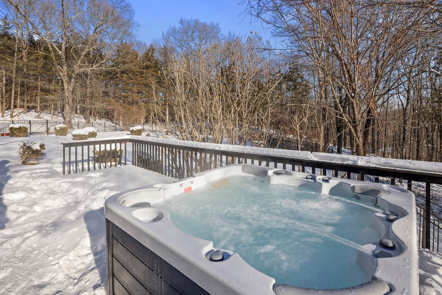 Experience luxury & tranquility in this stunning 9-bedroom, 4.5-bath home set on 7.5 private acres. Designed for up to 25 guests, this spacious retreat features a year-round hot tub, seasonal pool, game room, & a fully equipped chef’s kitchen. Relax in the elegant living spaces, unwind in the master suite, or take advantage of the flexible mid-level bedroom with a dedicated workspace. The oversized deck & serene surroundings make it the perfect getaway, all while being close to top attractions.