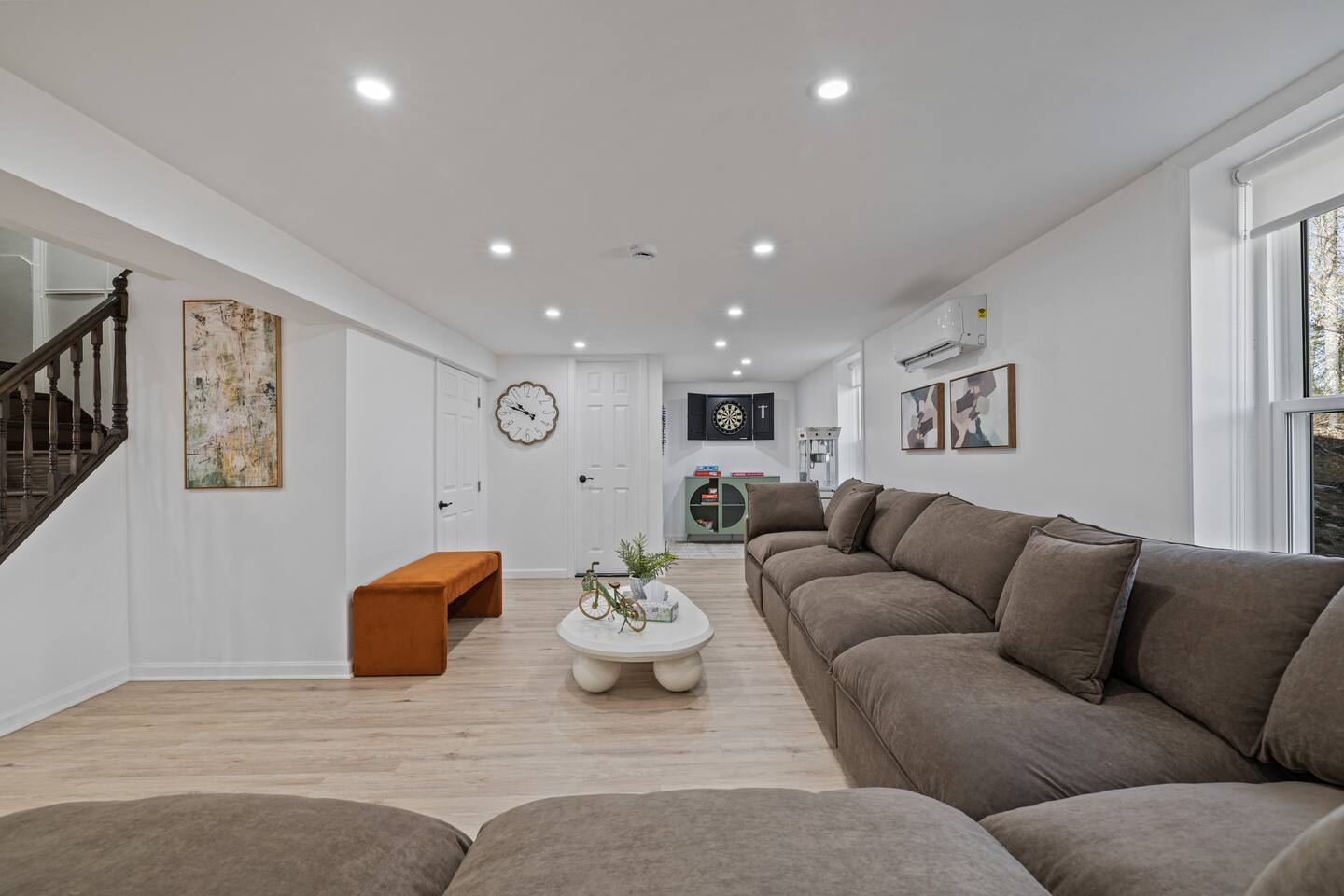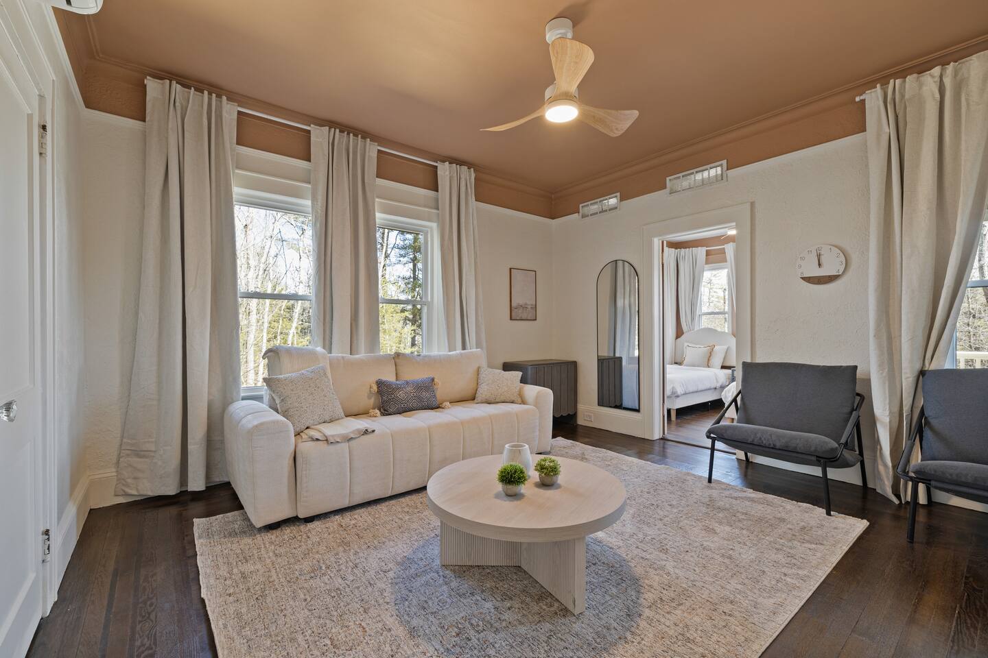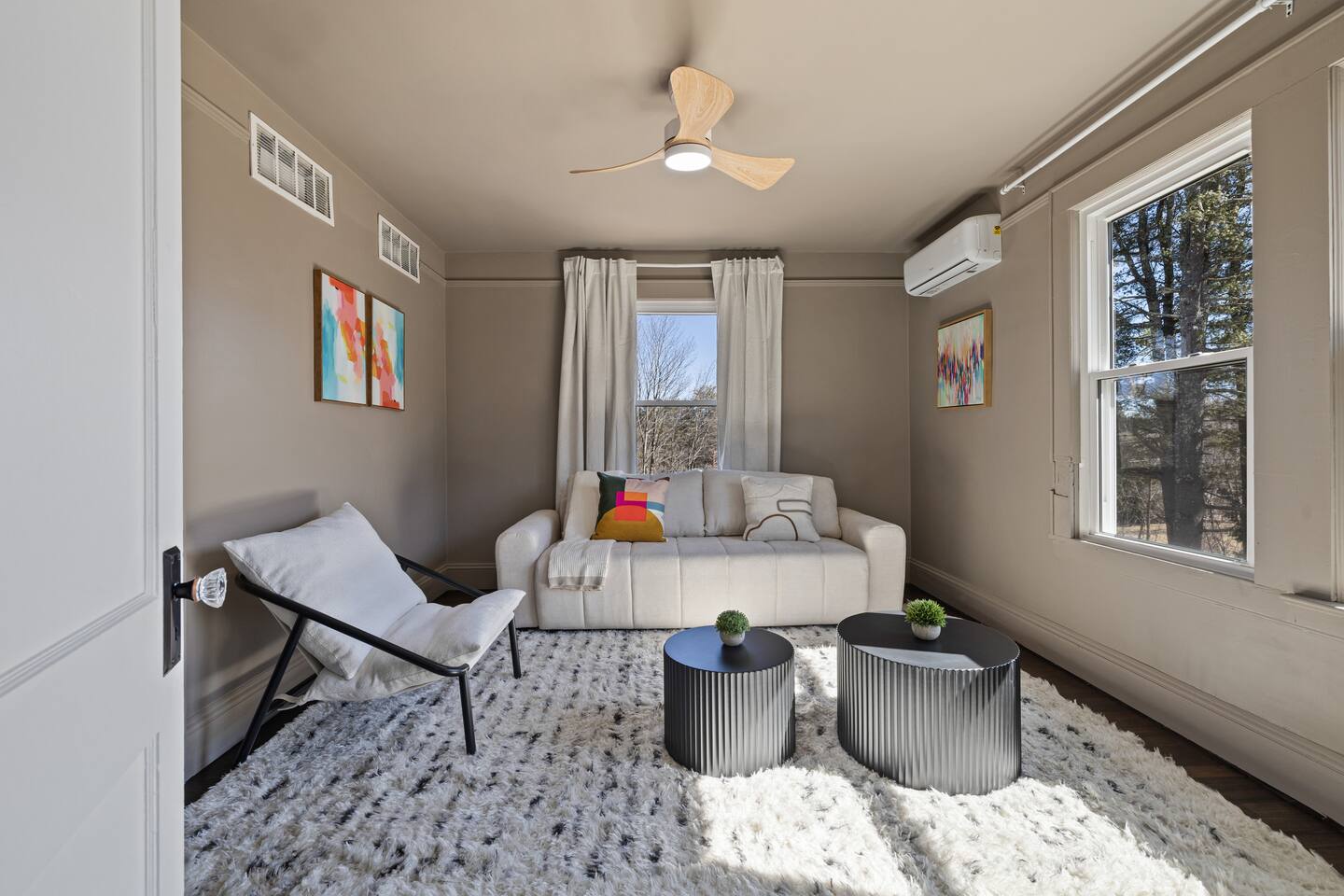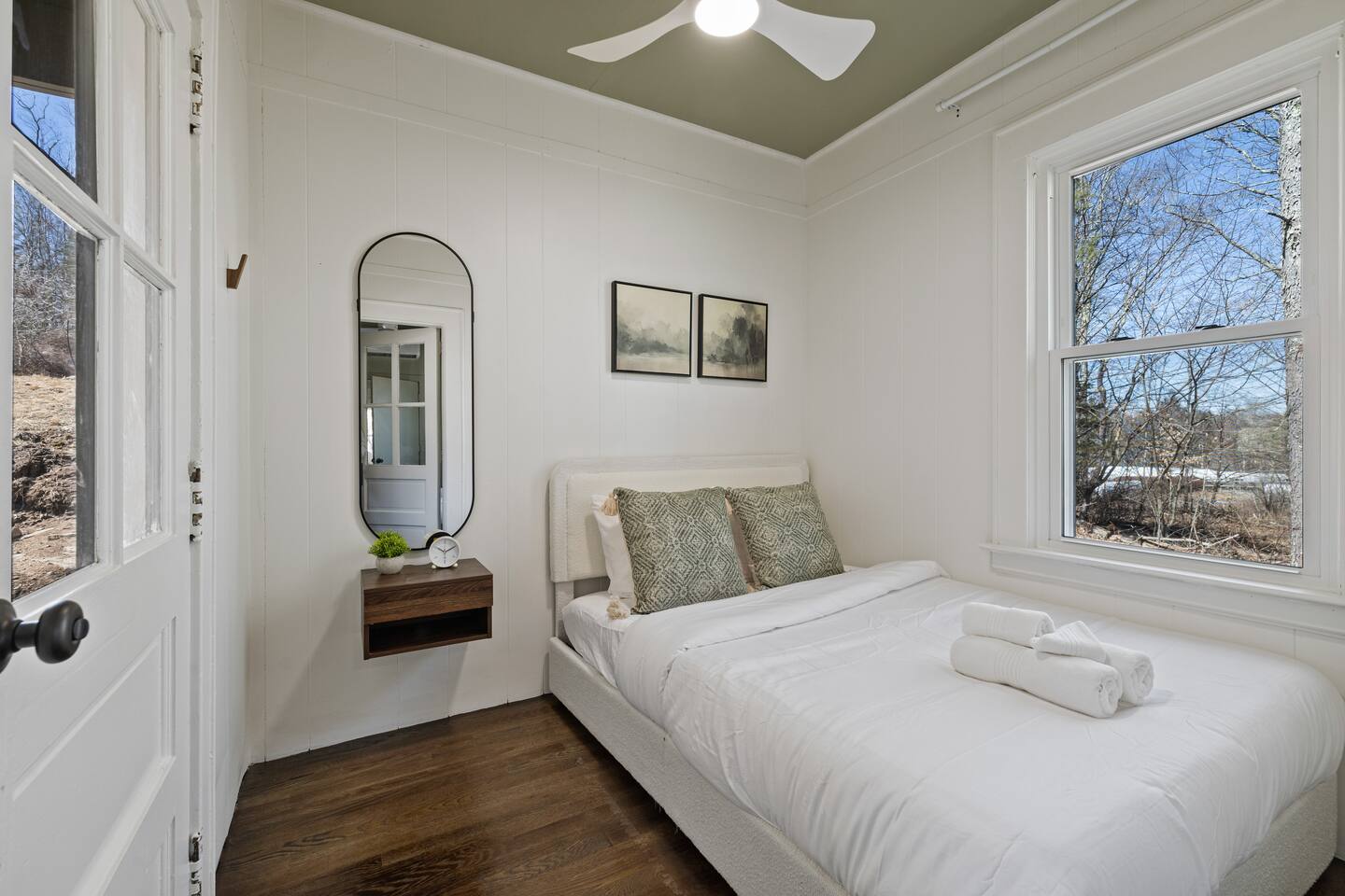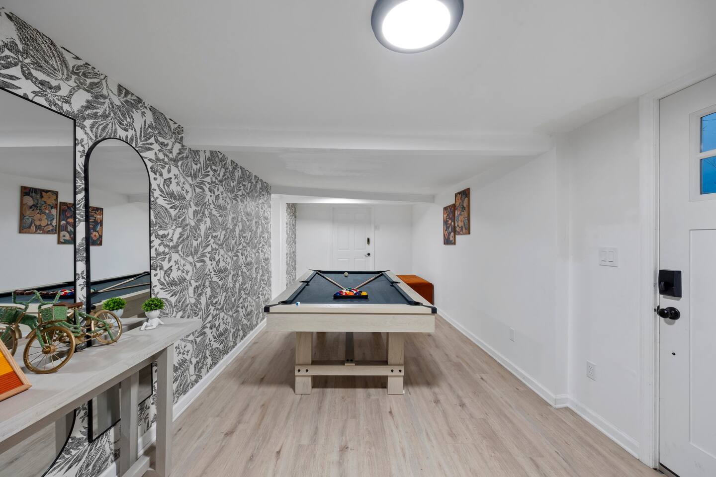 First Floor: Step into a warm and inviting space featuring a cozy living room, a dining area perfect for shared meals, and a fully equipped kitchen stocked with everything you need. A mudroom and laundry room with a washer and dryer add extra convenience, and a half bathroom completes this level. Second Floor: This floor offers two lounge areas, each with a sofa bed, perfect for relaxing or additional sleeping space. You'll find: A room with two twin beds. A room with two full-size beds and a full bathroom, leading into another room with a full-size beds. A red room with a queen-size bed and a private full bathroom, which connects to a room with a twin-on-twin bunk beds. An additional room with a twin bed. Please note: Two back bedrooms on this floor require passage through adjacent rooms for access. Third Floor: This floor also features two lounge areas, each with a sofa bed for extra sleeping space. You'll find: A room with two twin-on-twin bunk beds. A lounge area with a full bathroom and a sofa bed, leading into a room with a queen-size bed. A room with two twin beds. Another lounge area with a full bathroom and a sofa bed, leading into a bedroom with two full-size beds. This spacious home is designed to accommodate groups comfortably, ensuring a memorable and relaxing stay. We look forward to hosting you!