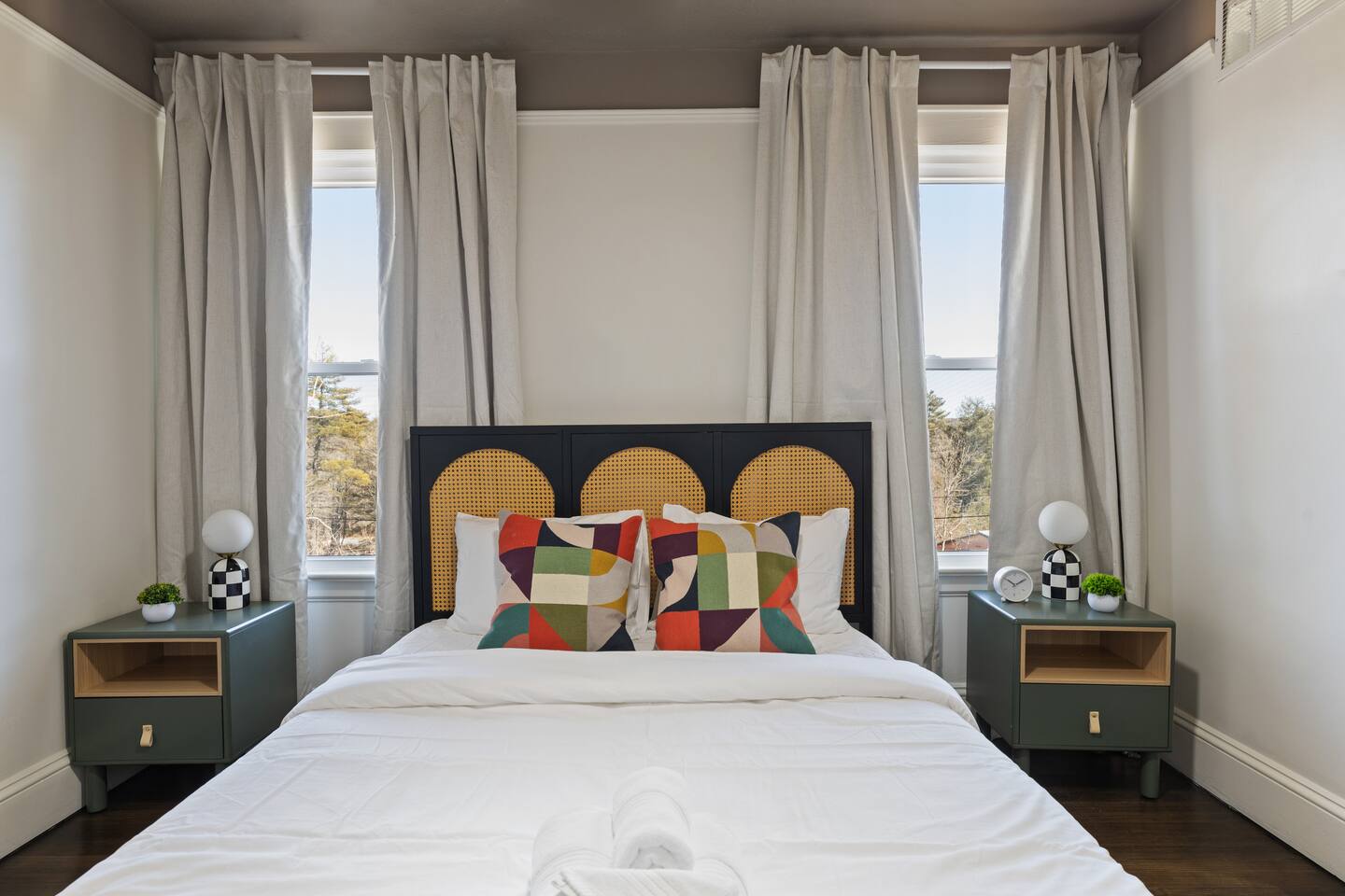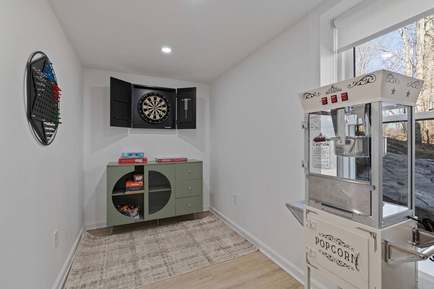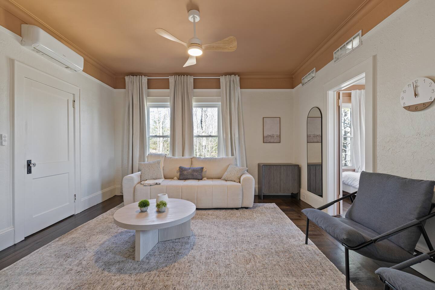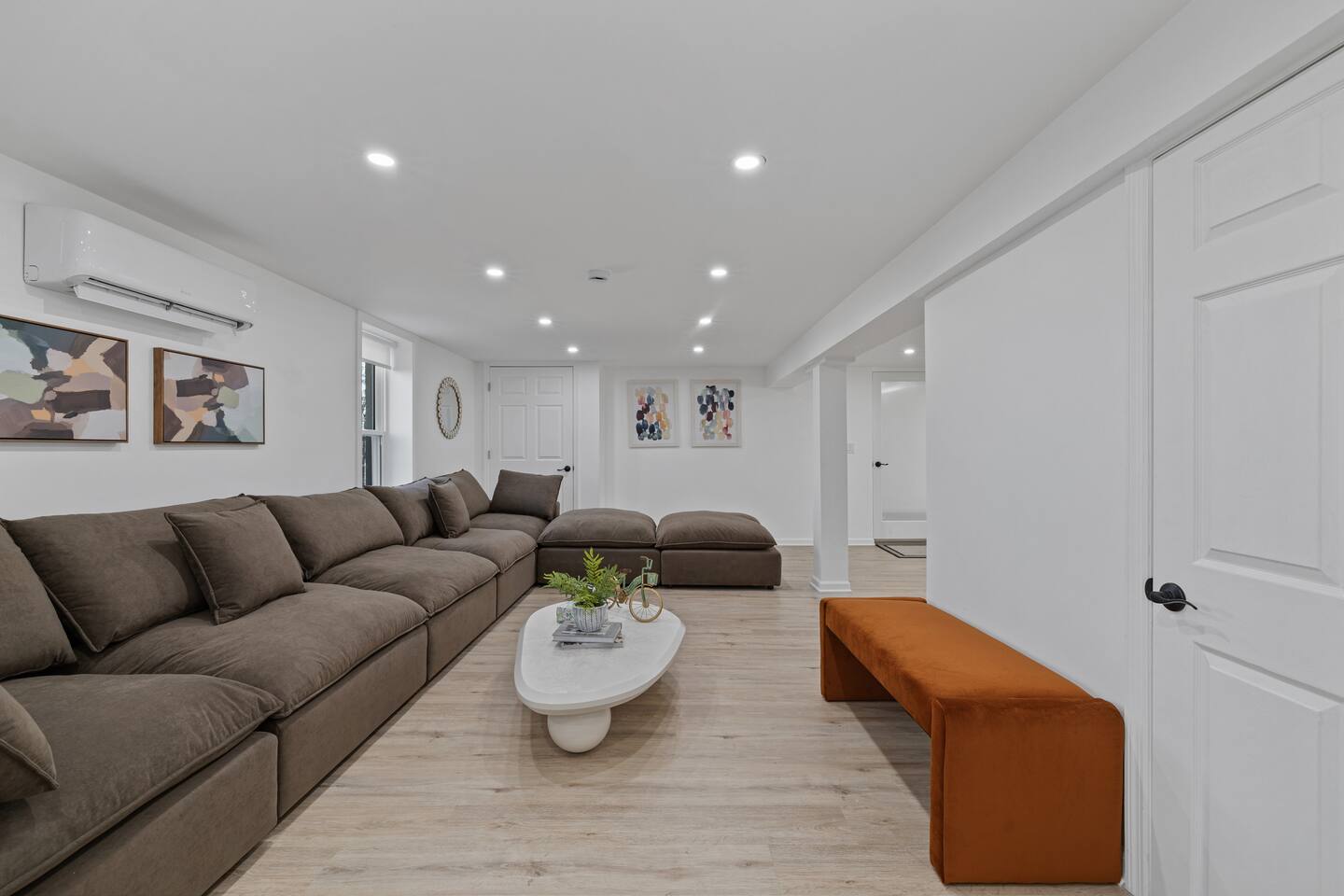 First Floor: Step into a warm and inviting space featuring a cozy living room, a dining area perfect for shared meals, and a fully equipped kitchen stocked with everything you need. A mudroom and laundry room with a washer and dryer add extra convenience, and a half bathroom completes this level. Second Floor: This floor offers two lounge areas, each with a sofa bed, perfect for relaxing or additional sleeping space. You'll find: A room with two twin beds. A room with two full-size beds and a full bathroom, leading into another room with a full-size beds. A red room with a queen-size bed and a private full bathroom, which connects to a room with a twin-on-twin bunk beds. An additional room with a twin bed. Please note: Two back bedrooms on this floor require passage through adjacent rooms for access. Third Floor: This floor also features two lounge areas, each with a sofa bed for extra sleeping space. You'll find: A room with two twin-on-twin bunk beds. A lounge area with a full bathroom and a sofa bed, leading into a room with a queen-size bed. A room with two twin beds. Another lounge area with a full bathroom and a sofa bed, leading into a bedroom with two full-size beds. This spacious home is designed to accommodate groups comfortably, ensuring a memorable and relaxing stay. We look forward to hosting you!