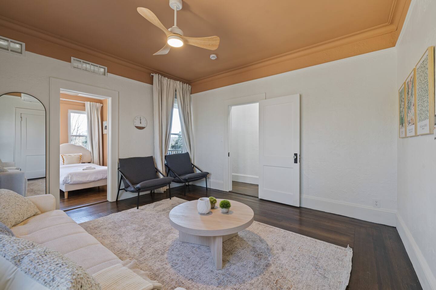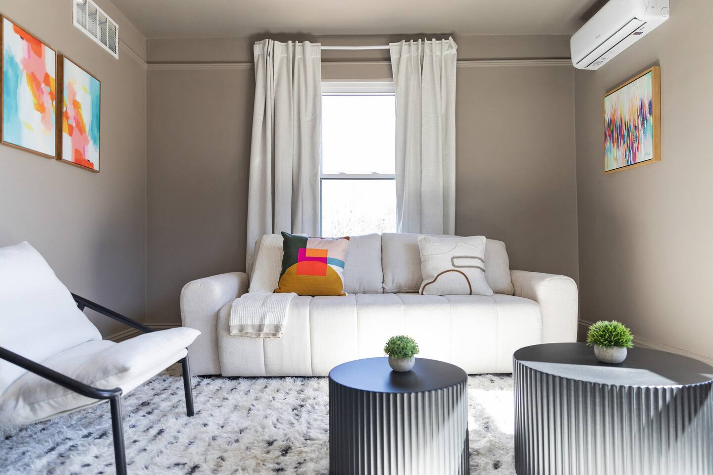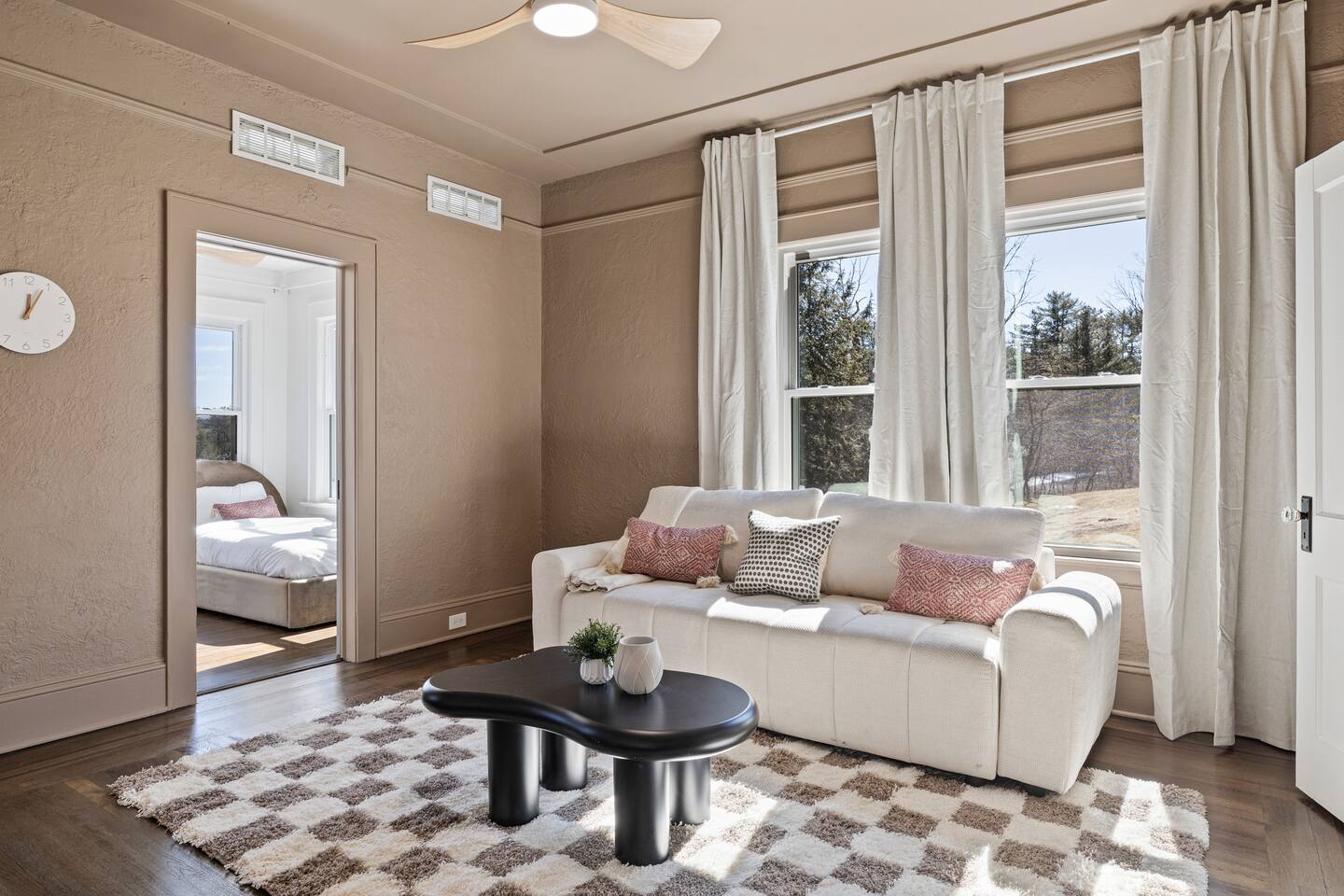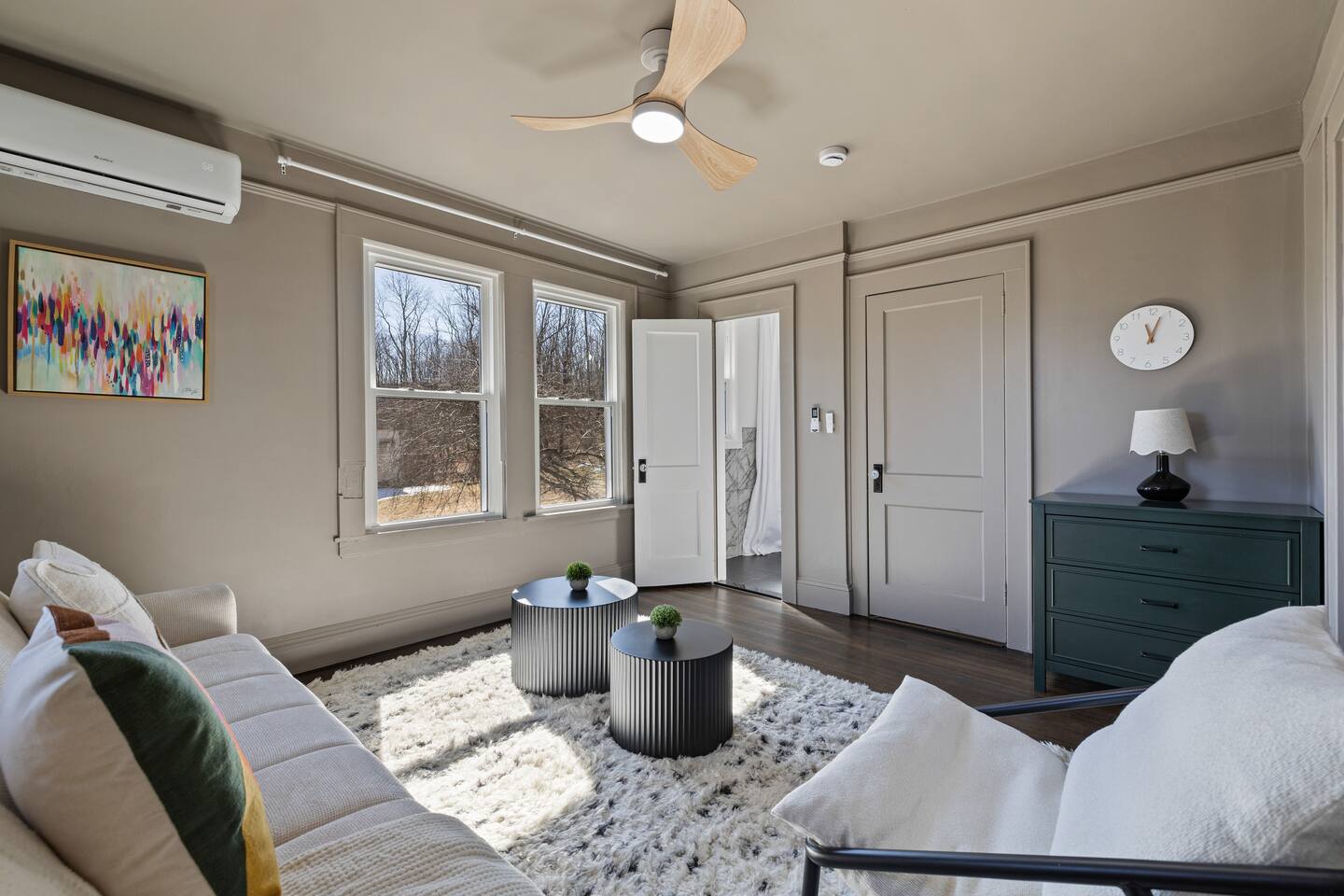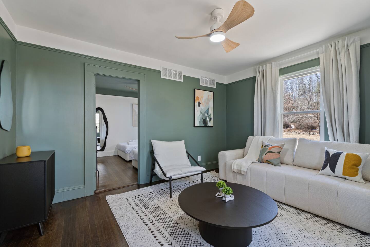 First Floor: Step into a warm and inviting space featuring a cozy living room, a dining area perfect for shared meals, and a fully equipped kitchen stocked with everything you need. A mudroom and laundry room with a washer and dryer add extra convenience, and a half bathroom completes this level. Second Floor: This floor offers two lounge areas, each with a sofa bed, perfect for relaxing or additional sleeping space. You'll find: A room with two twin beds. A room with two full-size beds and a full bathroom, leading into another room with a full-size beds. A red room with a queen-size bed and a private full bathroom, which connects to a room with a twin-on-twin bunk beds. An additional room with a twin bed. Please note: Two back bedrooms on this floor require passage through adjacent rooms for access. Third Floor: This floor also features two lounge areas, each with a sofa bed for extra sleeping space. You'll find: A room with two twin-on-twin bunk beds. A lounge area with a full bathroom and a sofa bed, leading into a room with a queen-size bed. A room with two twin beds. Another lounge area with a full bathroom and a sofa bed, leading into a bedroom with two full-size beds. This spacious home is designed to accommodate groups comfortably, ensuring a memorable and relaxing stay. We look forward to hosting you!
