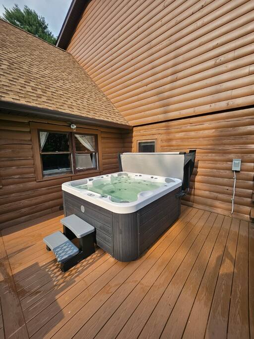 Escape to this spacious Catskills log cabin! With 8 bedrooms, 5.5 baths, all year round hot tub, game room, two decks, and large living areas, it’s perfect for groups and family getaways. Enjoy a full kitchen, central A/C, high-speed WiFi, washer/dryer, firepit, and peaceful forest views near parks, trails, lakes, ski resorts, and shops. Gather around the fireplace, explore nature, or relax on the deck. The perfect retreat to relax, connect, and unwind in every season.